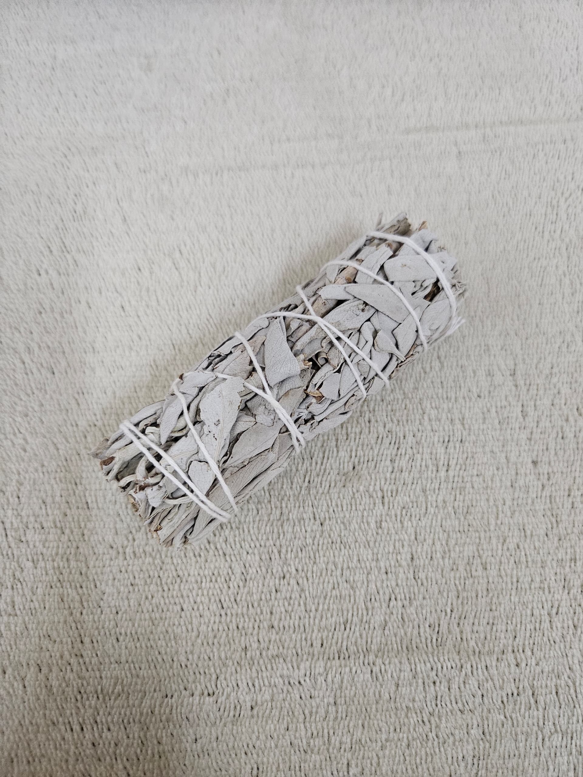 White sage, which has been used since ancient times, is a natural herb often used to clear negative energy and create a calming atmosphere. When burned as a smudge stick, it helps purify the air and can support relaxation during meditation or quiet time. Many people find that using white sage brings mental clarity, reduces stress, and enhances overall well-being.